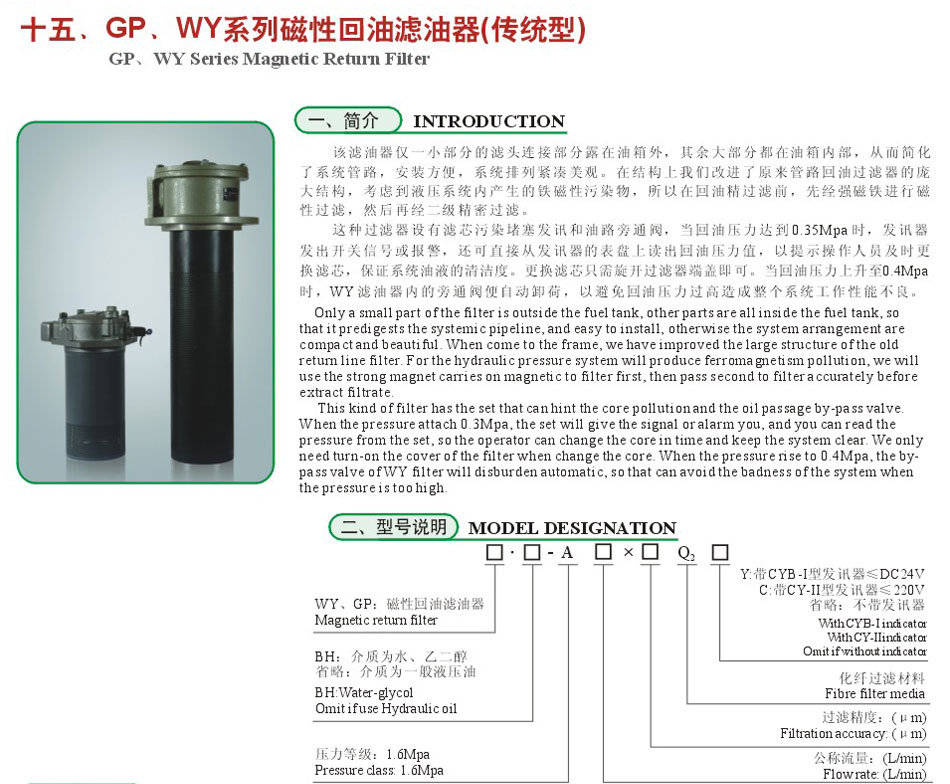 GP¡¢WY Series Magnetic Return Filter