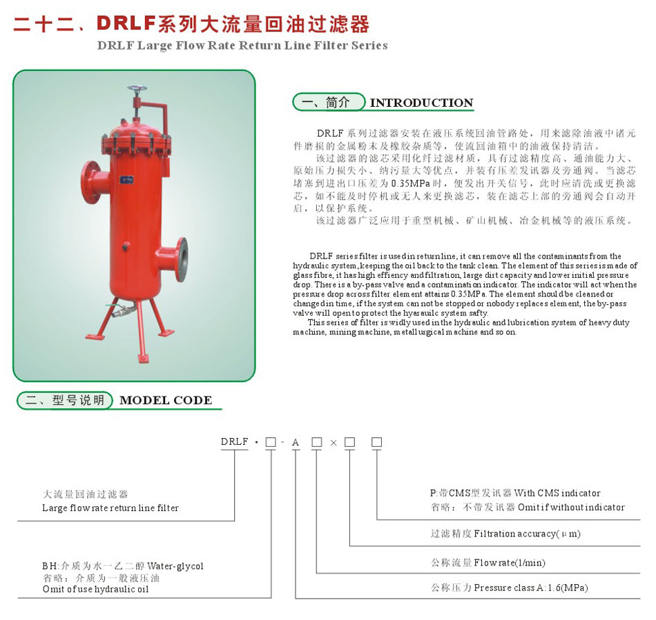 DRLF Series Large Flow Rate Return Line Filter