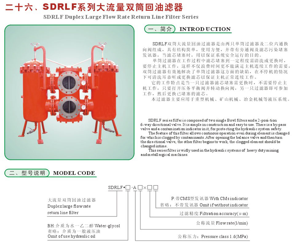 SDRL Duplex large Flow Rate Line Filter