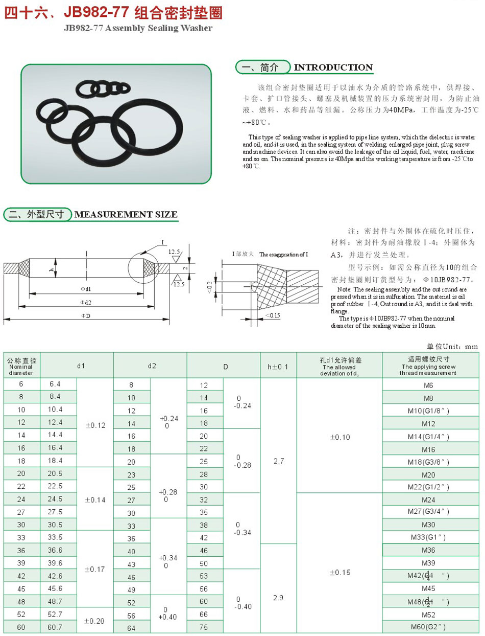 JB982-77组合密封垫圈